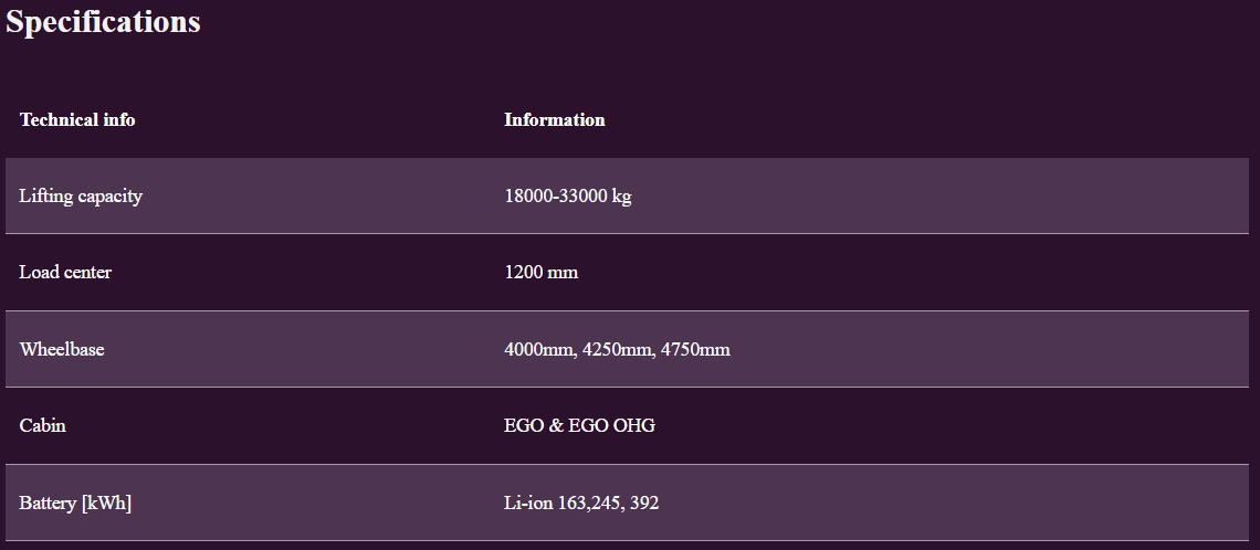 With the right mast and aggregates, you can lift any type of load between 18-33 tonnes. Here, Kalmar offers: • Three different mast types • A variety of forks and mounting options Kalmar's heavy electric forklifts are ideal for handling everything from containers, plates, pipes, timber, paper, concrete as well as building materials and parts.
