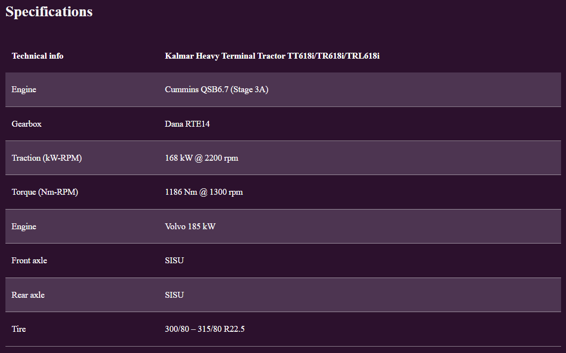 Kalmar has three different models within terminal tractors for heavy duty. One is front-wheel drive and intended for RoRo handling.